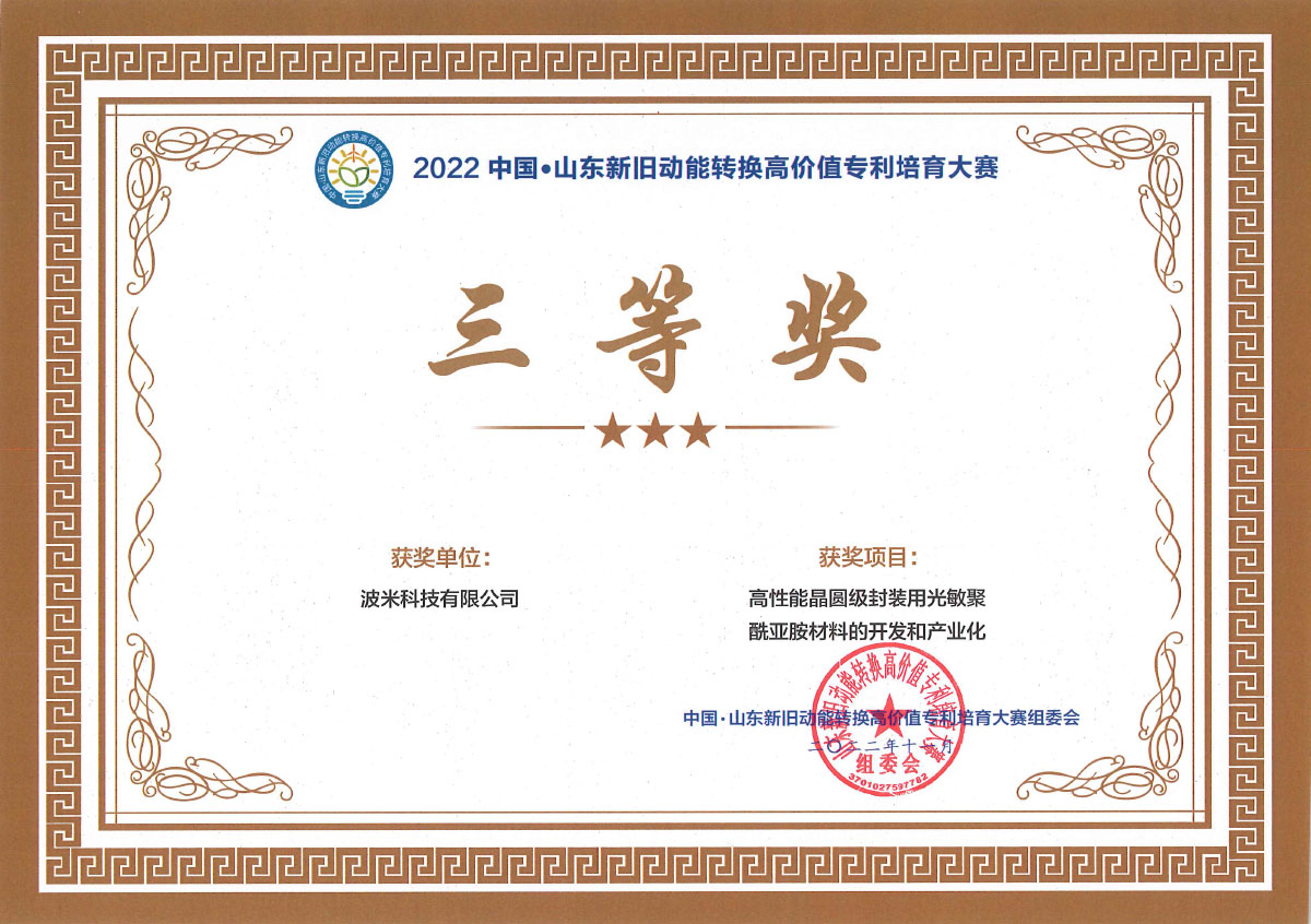 波米依托山東省院士工作站、山東省顯示與集成電路用聚酰亞胺涂層膠重點實驗室(籌)等研發平臺,承擔了國家級關鍵技術攻關項目1項、山東省重點研發計劃(重大科技創新工程)4項、省市縣級重點研發項目10余項。公司已累計申報核心專利75項(其中52項發明專利已獲授權,23項發明專利處于實質審查階段)。